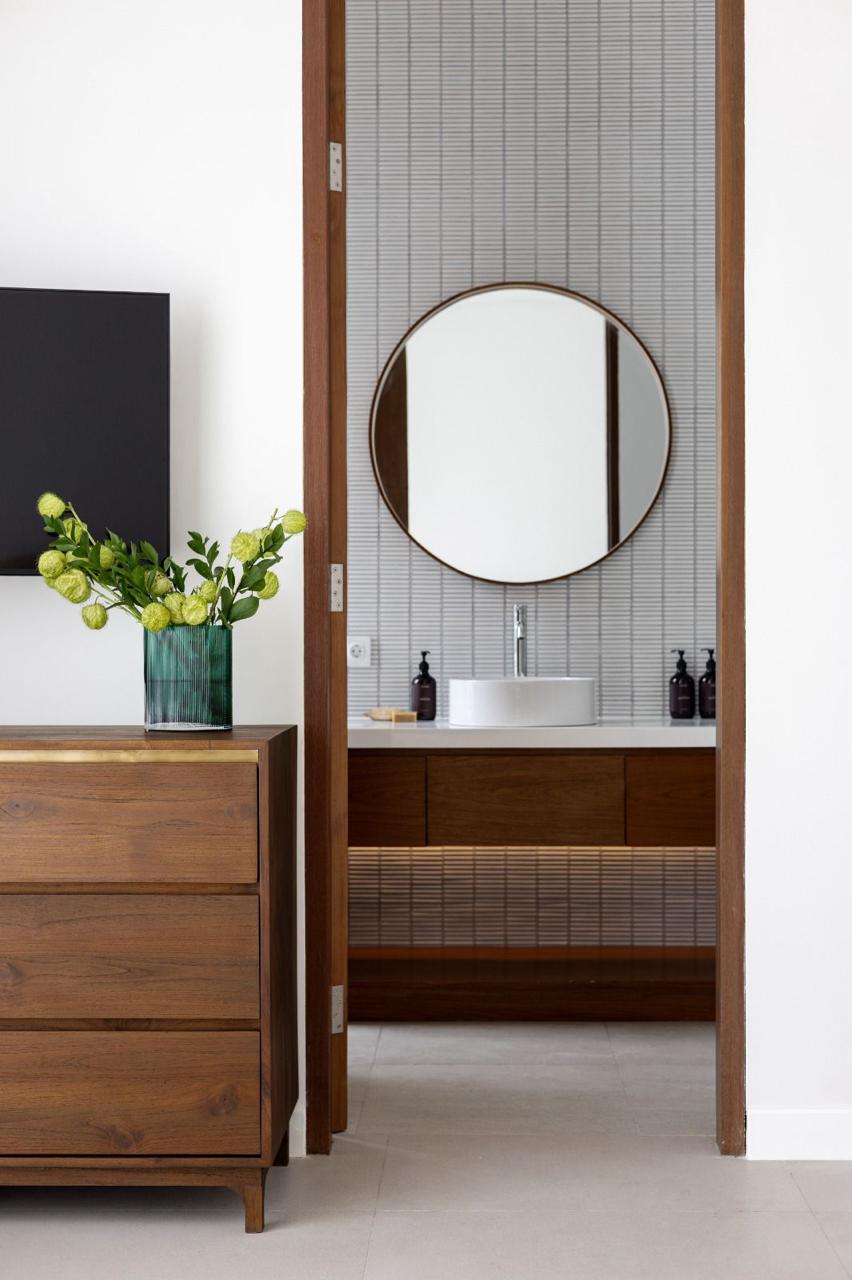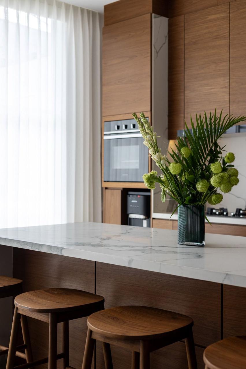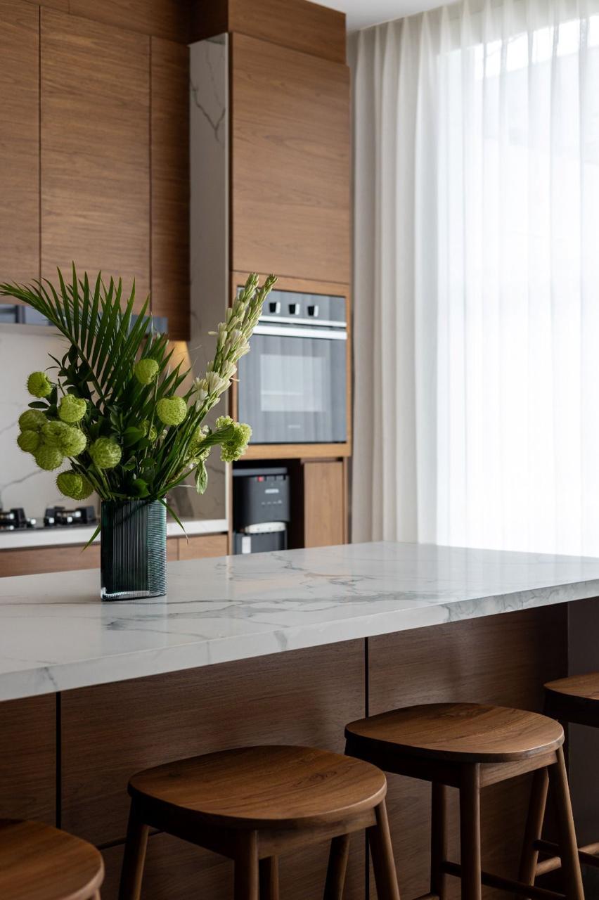 * Design: Modern minimalist architecture complemented by rich, natural wooden accents throughout.