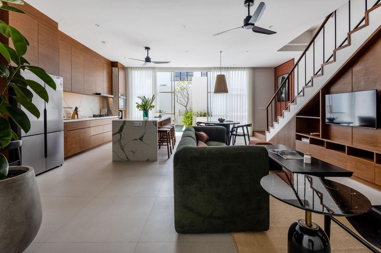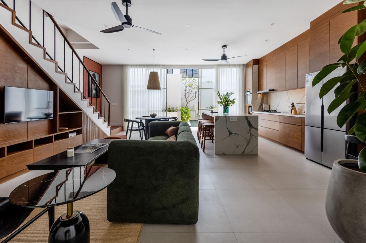 Discover sophisticated tropical living in this stunning, newly built 2-bedroom villa, perfectly situated in the desirable and tranquil neighborhood of Umalas. This property seamlessly blends sleek modern design with warm Balinese wooden accents, creating an inviting and luxurious private retreat.