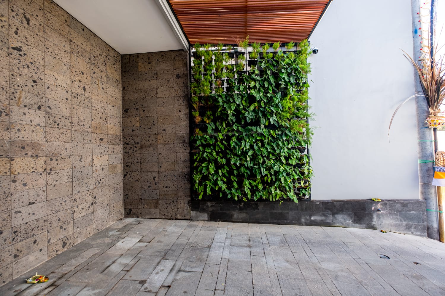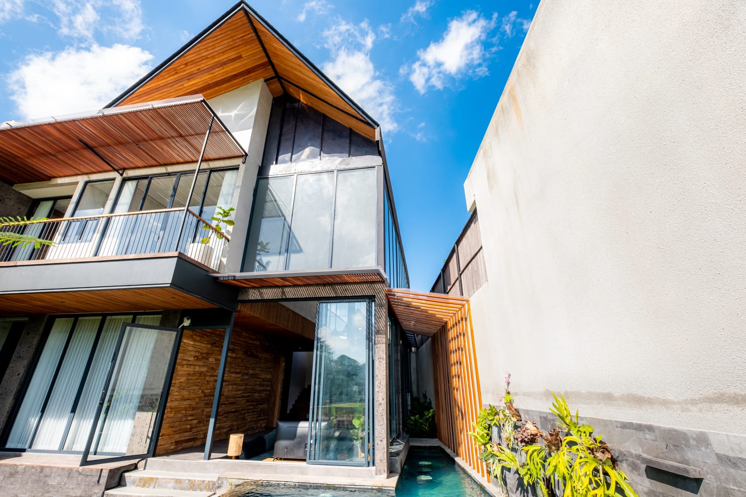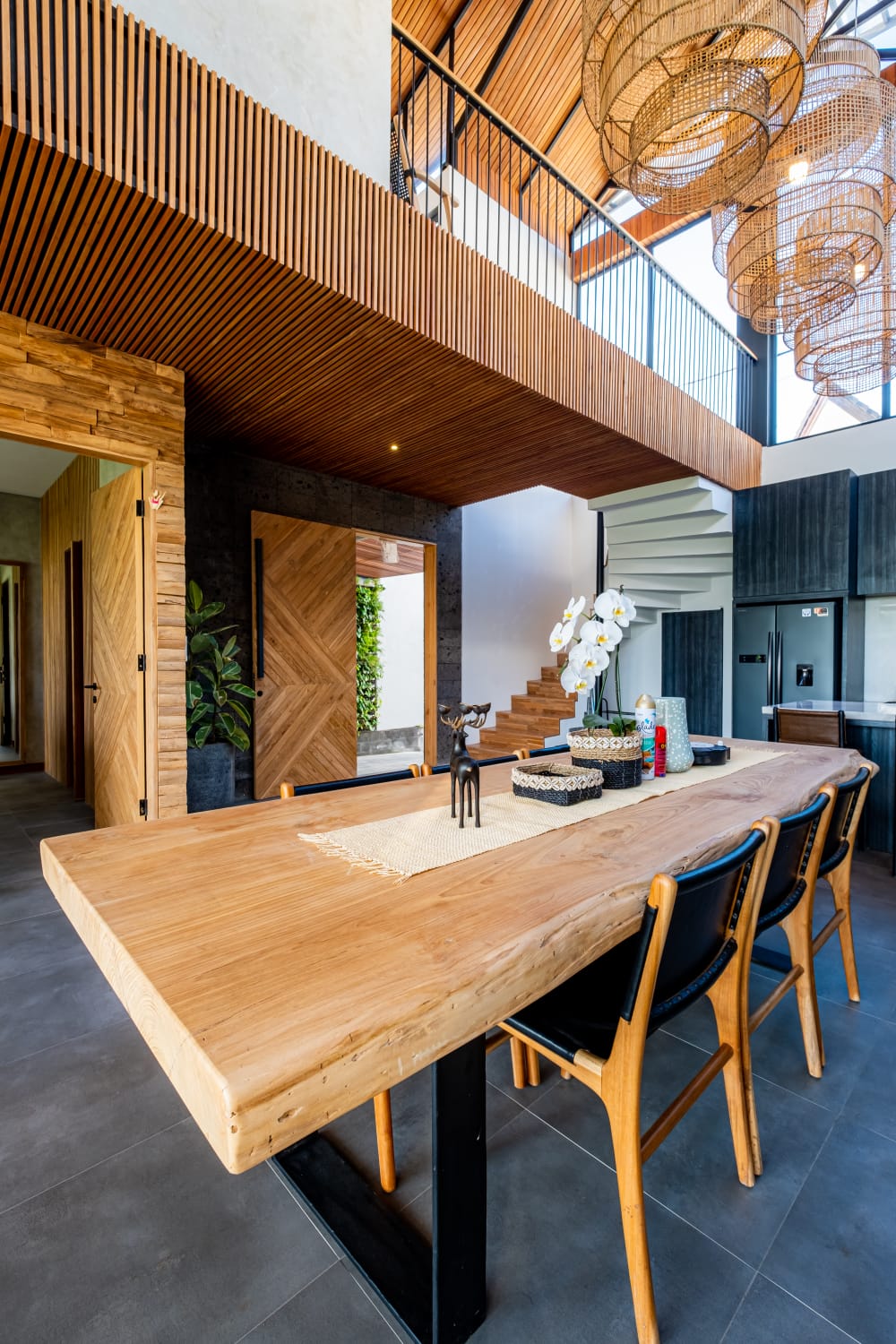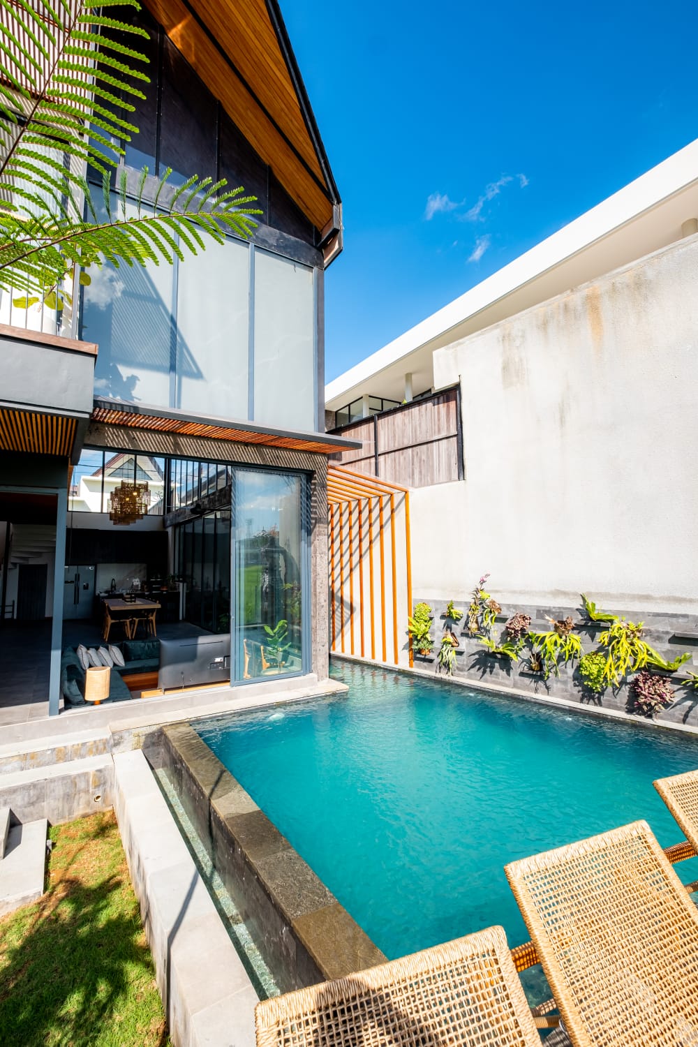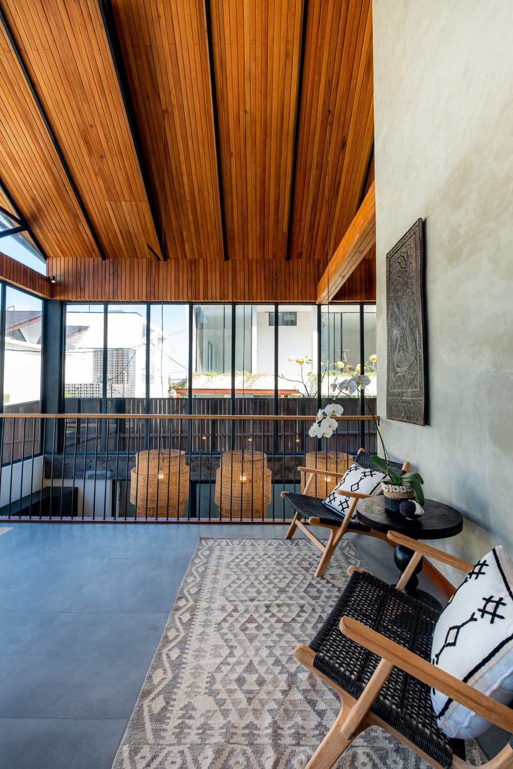 * Sophisticated Interior: Features a spacious enclosed living area with extra-high ceilings, creating a grand, airy atmosphere that keeps the tropical heat at bay.