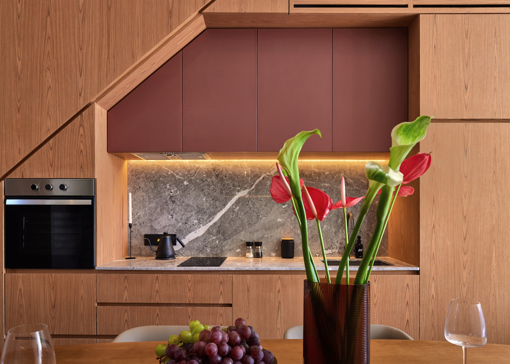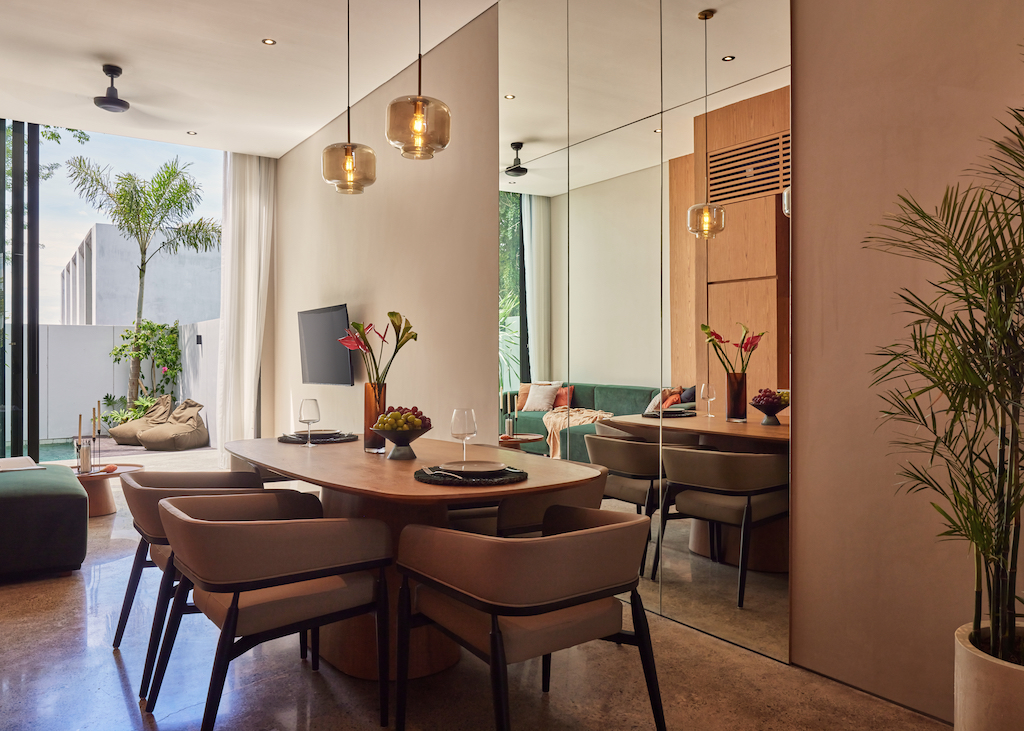 * Ground Floor Hub: A bright, elegant living area featuring a fully-equipped chef’s kitchen (including an oven) and premium furnishings—perfect for hosting or quiet mornings by your private swimming pool.