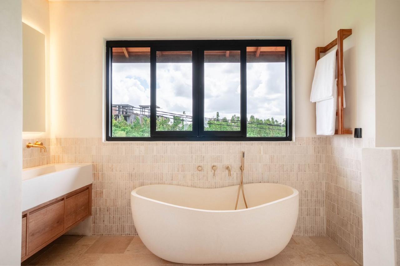 * Master Sanctuary: An en-suite escape featuring a luxurious bathtub with views over the emerald rice fields.