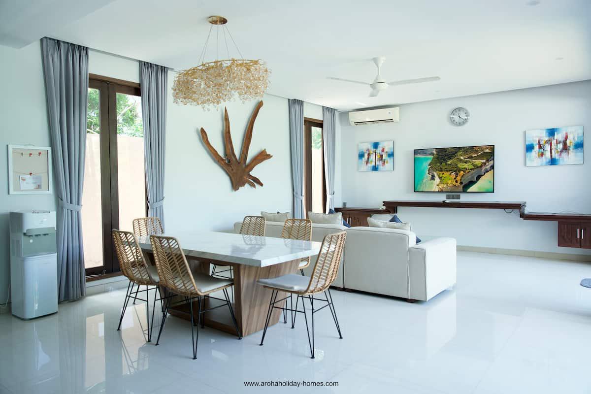 – Spacious Living Areas: Enjoy a comfortable living room, dining area, and fully equipped kitchen.
